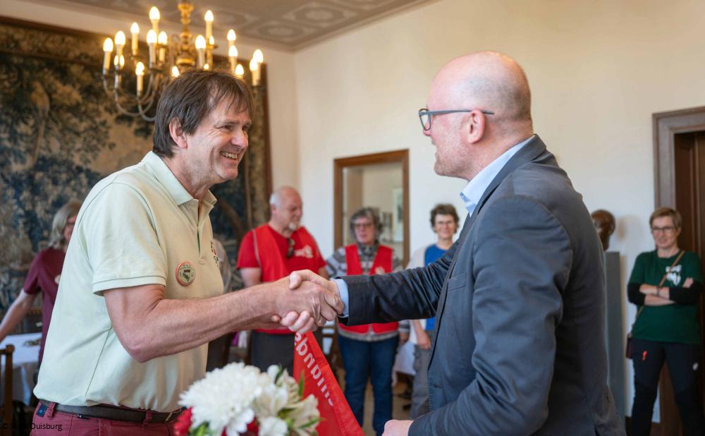 Auf dem Weg nach Bremen erfuhren die Teilnehmenden viel über friedenspolitische Ereignisse und diskutierten diese unter anderem mit gut einem Dutzend Bürgermeister*innen, die die Gruppe während der einzelnen Etappen empfingen.