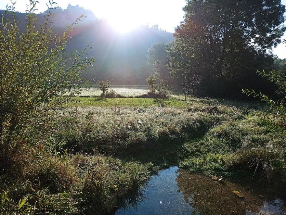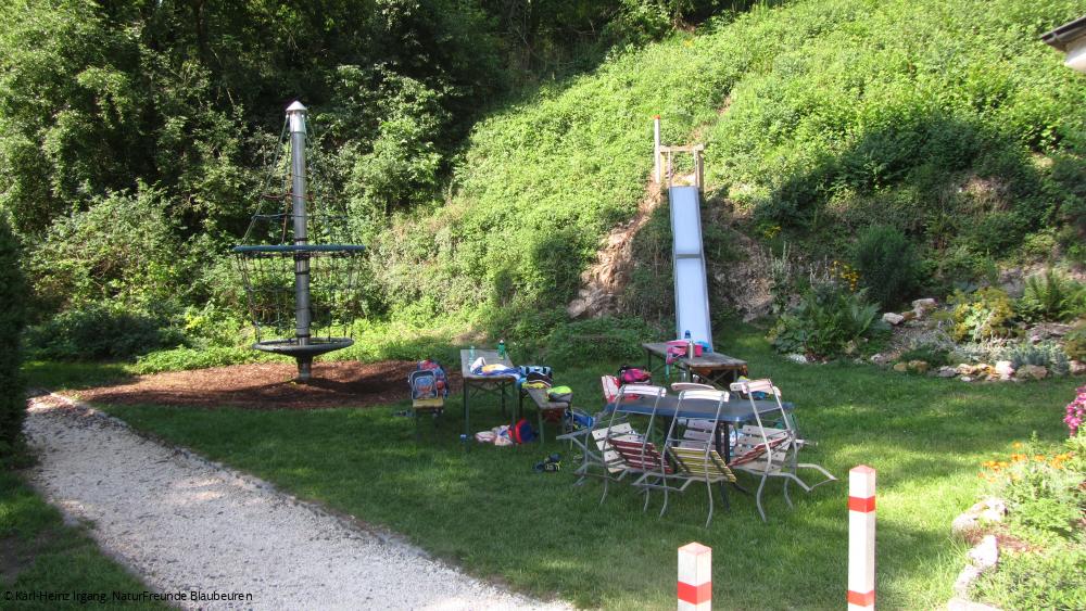 Das Haus liegt in ruhiger Lage (509 müNN) im Blautal, gut einzusehen vom Donau-Radwanderweg im Abschnitt zwischen Blaubeuren und Gerhausen. 7 Fußminuten zum Bahnhof und 15 Minuten in die Altstadt, Einkaufszentrum am Bahnhof. Für Wandertouren rund um Blaubeuren bietet es einen optimalen Ausgangspunkt, Klettersteige gibt es in nächster Umgebung. Es hat Anschluss an ein gutes Spazierwegenetz. Wer aber einfach nur entspannen möchte, wird sich ebenso wohl fühlen bei herrlicher Aussicht auf die Talaue, den schönen Mischwald im gegenüberliegenden Hang, die darüberliegende Ruine Rusenschloss und auf das Hörnle im Süden.