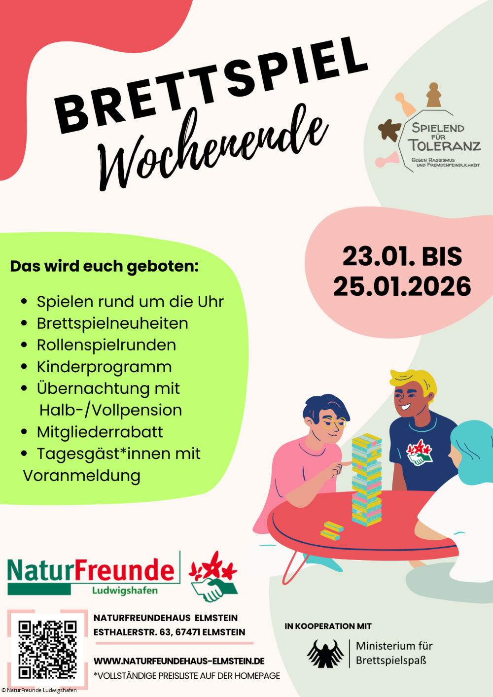 Weitere Informationen sowie Zugriff auf die Informationsbroschüre finden Sie unter: https://naturfreunde-ludwigshafen.de/brettspielwochenende